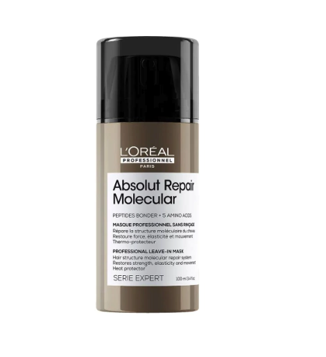 Cuando el cabello está dañado, su estructura molecular,compuestaporpéptidos, se ve comprometida. El cabello se quiebra, se vuelveelásticoy pierde movimiento. La mayoría de los péptidos son demasiadograndespara ser reinyectados en la fibra capilar, lo que hace que eldañoseacasi irreversible.Descubrimiento científico: Absolut Repair Molecular. Repara 2añosdedaño en un solo uso*. Por primera vez, la InvestigaciónAvanzadadeL’Oréal Investigación Avanzada ha logrado descomponer lospéptidosparainyectar sus componentes por separado en la fibra capilar**.Unavezdentro, estos componentes se recomponen y reconstruyen laestructuramolecular del cabello***.Máscara sin enjuague profesional, formulada con reparador deenlaces+5aminoácidos para reparar la estructura macro- molecular delcabello*.Su textura ligera penetra instantáneamente para restaurar laelasticidady el movimiento****. El cabello está más suave, brilloso, conaspectosaludable y protegido contra agresiones externas. Toquenatural.Protección térmica por hasta 230°.Para todo tipo de cabello dañado, con coloración, decoloraciónynatural.En tu próxima visita al salón, solicitá el servicio de AbsolutRepairMolecular para obtener una reparación molecular del cabello yreparar2años de daño en un solo uso*. Para un cabello más fuerte,saludableyfluido. *Prueba instrumental sobre la estructura macro-molecular de lafibradespués de la aplicación del shampoo Absolut Repair Molecular+sérumdeenjuague Absolut Repair Molecular + máscara sin enjuagueAbsolutRepairMolecular.**Reparador de enlaces y aminoácidos***Prueba instrumental después de 15 aplicaciones de shampooAbsolutRepair Molecular + sérum de enjuague Absolut Repair Molecular+máscarasin enjuague Absolut Repair Molecular .****Test de autoevaluación después de 2 semanas de uso delshampooAbsolut Repair Molecular + Sérum de enjuague Absolut RepairMolecular+Máscara sin enjuague Absolut Repair Molecular. Penetración profunda***.97% más fuerza****.Protege a la fibra contra agresiones externas.Protección térmica por hasta 230°/450F ****.+52% de suavidad.****+85% de control de frizz****. *** Prueba analítica después de la aplicación de la máscarasinenjuague Absolut Repair Molecular .****Prueba instrumental después de la aplicación de la máscarasinenjuague Absolut Repair Molecular.